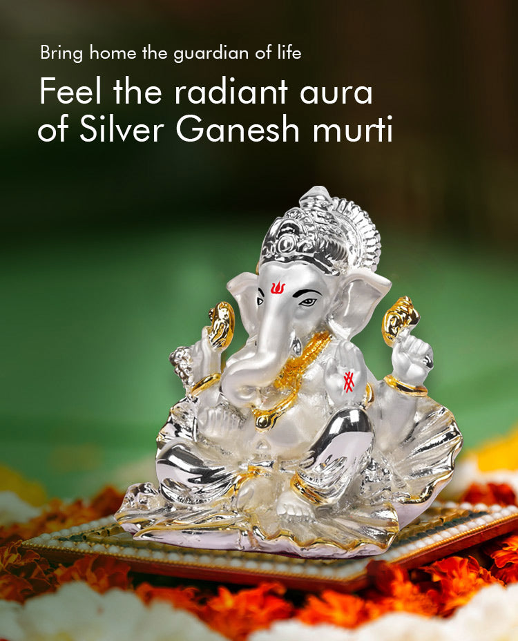 Diviniti 999 Silver Plated Ganesha Idol for Home Decor Showpiece