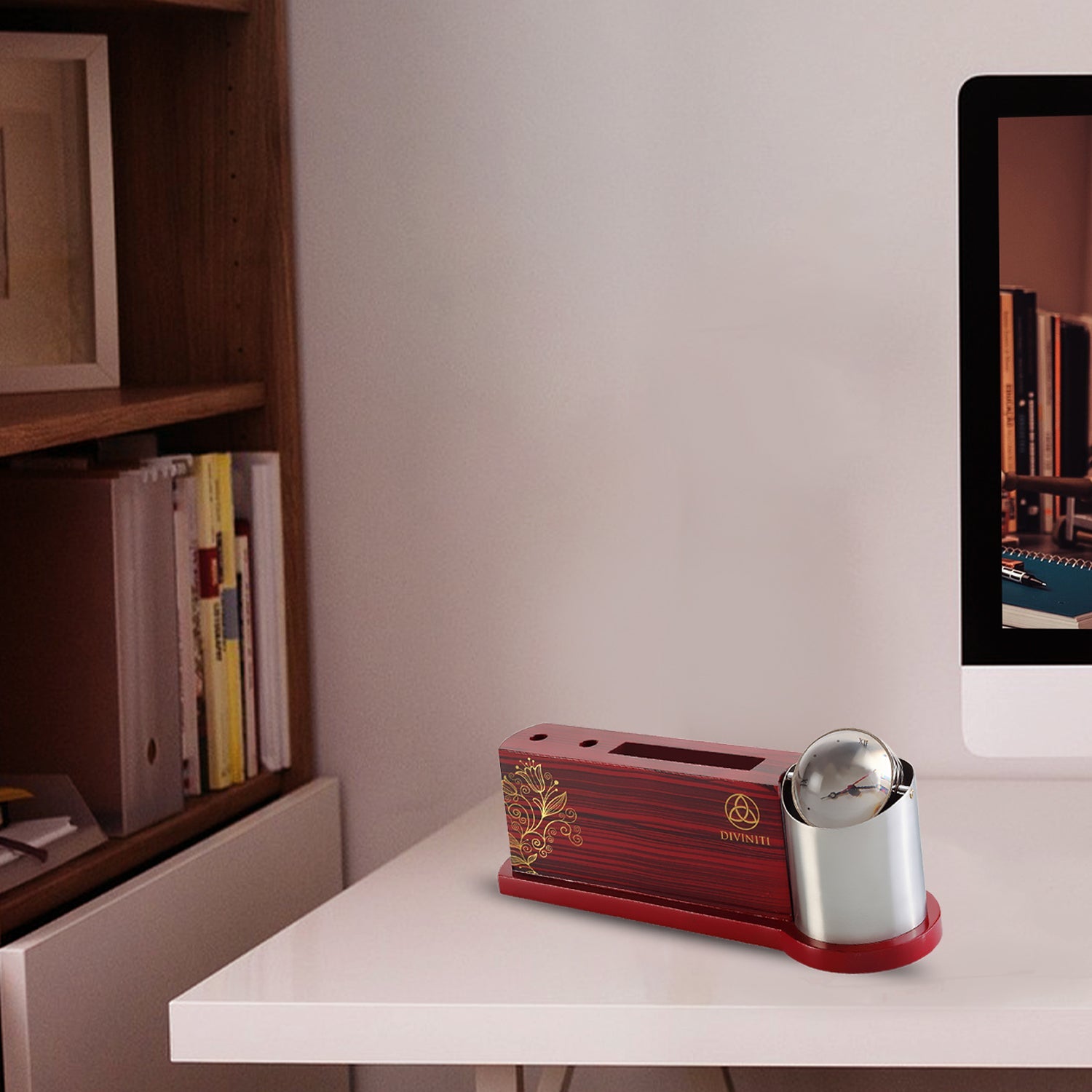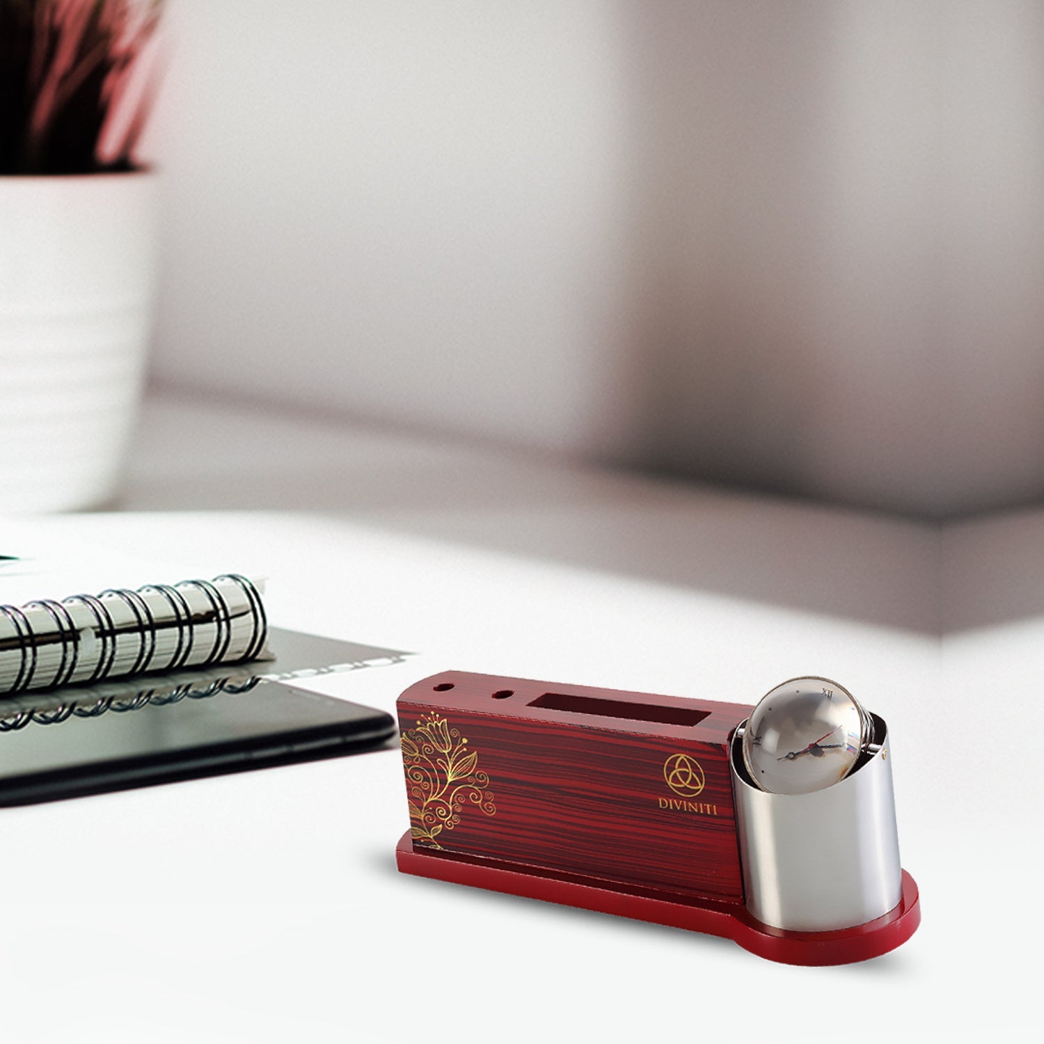 Customized Table Top Watch With MDF Pen & Card Holder SKU: TT023 Leave a lasting impression with this timeless and prestigious corporate gift, a testament to your commitment to excellence. This exquisite piece exudes luxury and sophistication, making it the perfect choice for your esteemed clients and partners and employees in office or workplace. Crafted with precision, it adds a touch of opulence to any office or home setting. Elevate your workspace with our exquisite Pen & Card Holder with Watch. This elegant accessory seamlessly combines functionality and spirituality, adding a touch of divine inspiration to your desk. Crafted with precision and adorned with genuine design, this pen holder exudes luxury and opulence. Diviniti at present has a wide range of exquisite corporate gifting and home decor solutions catering to everyone from the businesses to connoisseurs of art and the devotees of Indian spirituality. • Customize with your Company's logo or message. • Features a Table Top Watch. • Crafted using advanced Swiss Technology. • Ideal Size for Easy Placement. • Perfect for corporates as luxury gifting. • Aesthetic Appeal with Classy Touch. |