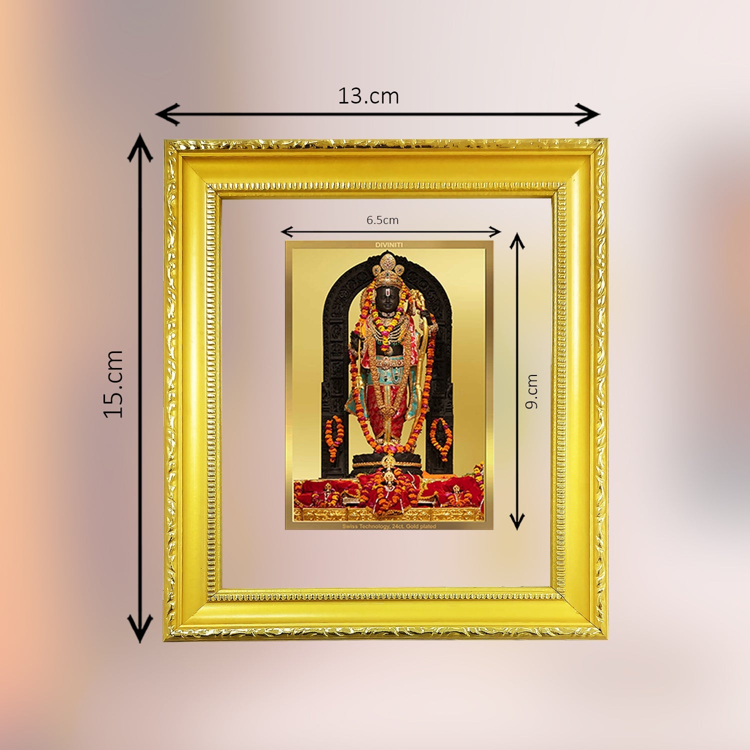 Diviniti 24K Gold Plated Ram Lalla Photo Frame For Home Decor, Table Decor, Wall Hanging, Puja Room & Gift (20.8 CM X 16.7 CM)