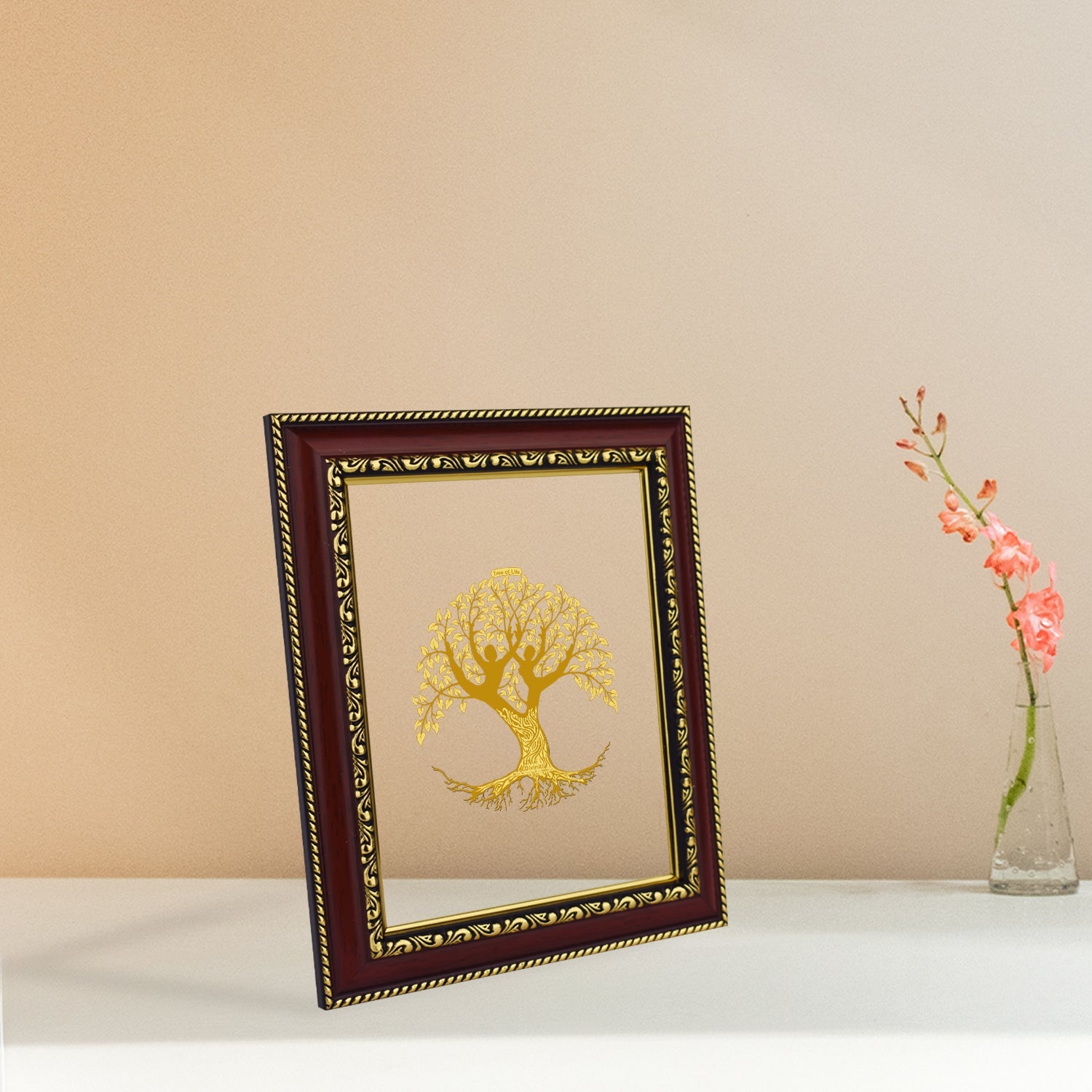 A wall photo frame with a timeless symbol “Tree of Life“ at the Centre holds a huge meaning and at the same time acts as a perfect decoration material. The 24 Ct. gold plated photo frame with its inspiring concept creates an awe-inspiring decor and adds enchanting appeal not only to the wall but the overall room.