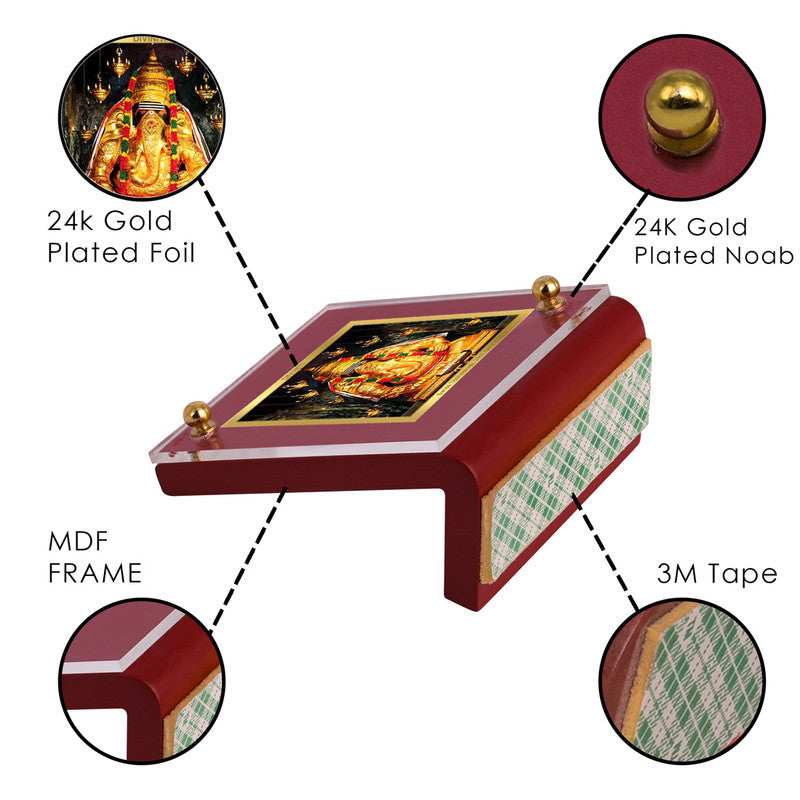 This Ayyappa Vinayagar frame serves as an exquisite addition to your car dashboard, home, table, office, shop or showroom. You can also use it in your Puja room to create a serene and sacred atmosphere. Made from high-Wooden Materials and adorned with 24K gold-plated foil, this divine frame is crafted to withstand the test of time, ensuring long-lasting spark and durability.