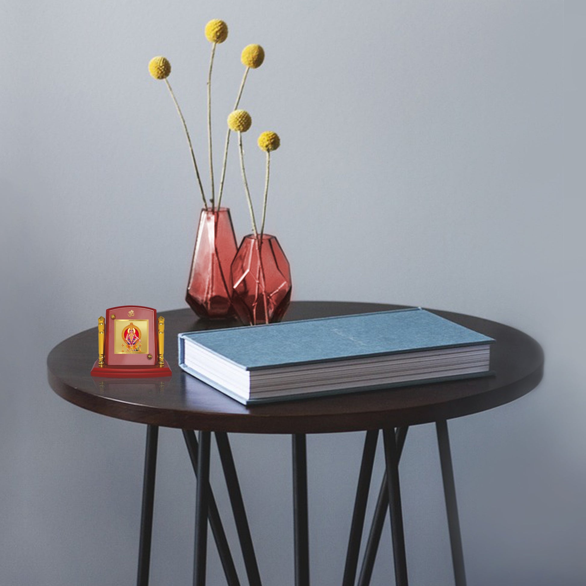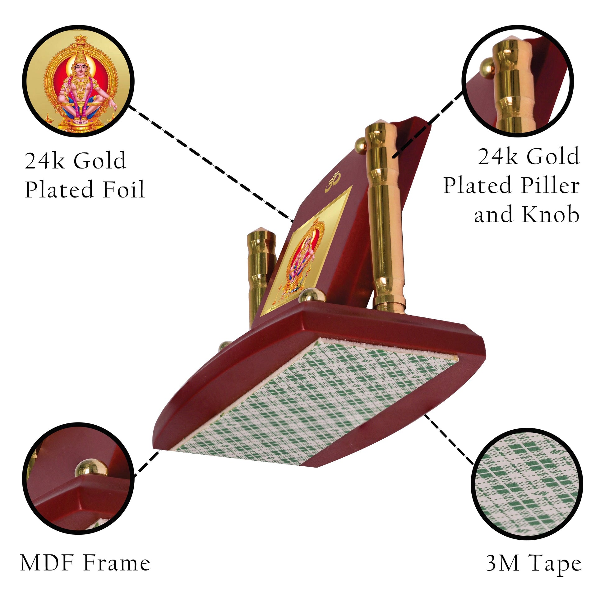 This Ayyappan Ji frame serves as an exquisite addition to your car dashboard, home, table, office, shop or showroom. You can also use it in your Puja Prayer room to create a serene and sacred atmosphere. Made from Wooden Material and adorned with 24K gold-plated foil, this divine frame is crafted to withstand the test of time, ensuring long-lasting spark and durability.
