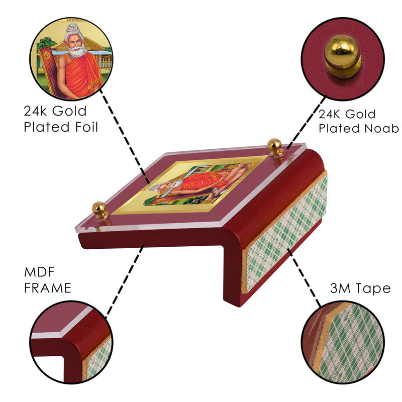This Baba Lokenath frame serves as an exquisite addition to your car dashboard, home, table, office, shop or showroom. You can also use it in your Puja room to create a serene and sacred atmosphere. Made from high-Wooden Materials and adorned with 24K gold-plated foil, this divine frame is crafted to withstand the test of time, ensuring long-lasting spark and durability.