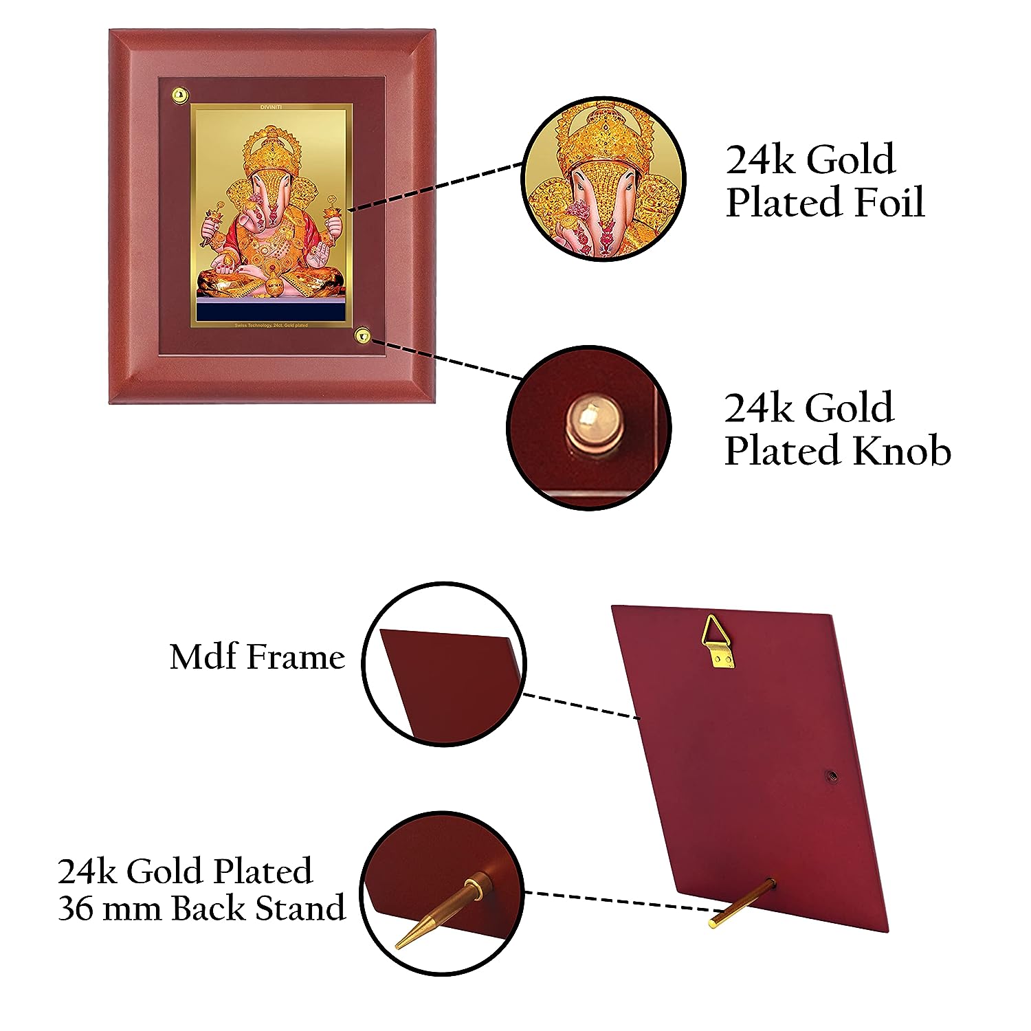 The MDF Wooden frame bears the image of Dagadu Ganesha that infuses an instant energy full of divinity and positivity. The 24K Gold Plated foil adds a unique glory to your décor and interiors.