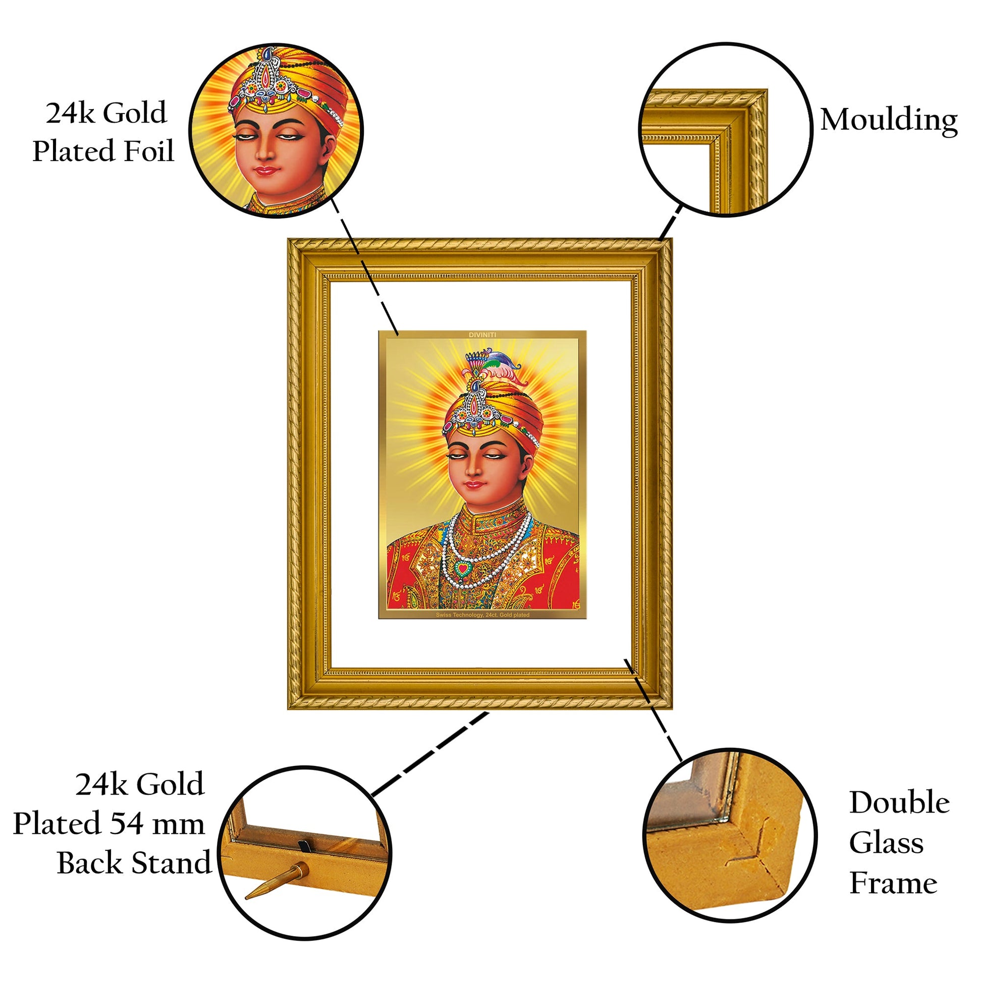 Immerse yourself in spirituality while adding a decorative touch to your walls of your home or office with the addition of DG photo frame complemented by gold plated foil. The Gold plated foil creates a glorious outlook that makes your interiors look mesmerizing. The DG frame bears the image of Guru Harkrishan that infuses an instant energy full of divinity and positivity. The 24K Gold Plated foil adds a unique glory to your décor and interiors.
