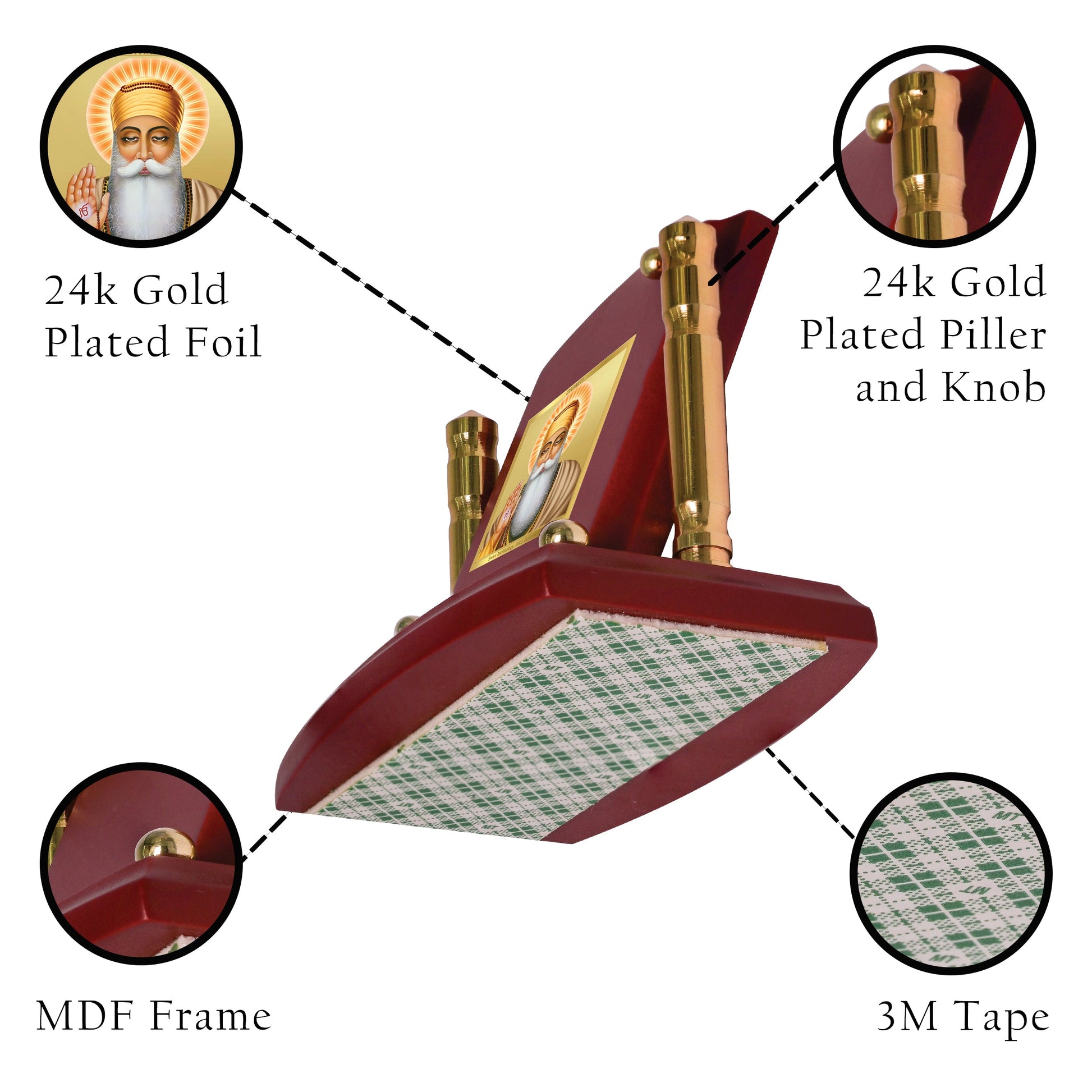This Guru Nanak frame serves as an exquisite addition to your car dashboard, home, table, office, shop or showroom. You can also use it in your Puja Prayer room to create a serene and sacred atmosphere. Made from Wooden Material and adorned with 24K gold-plated foil, this divine frame is crafted to withstand the test of time, ensuring long-lasting spark and durability.