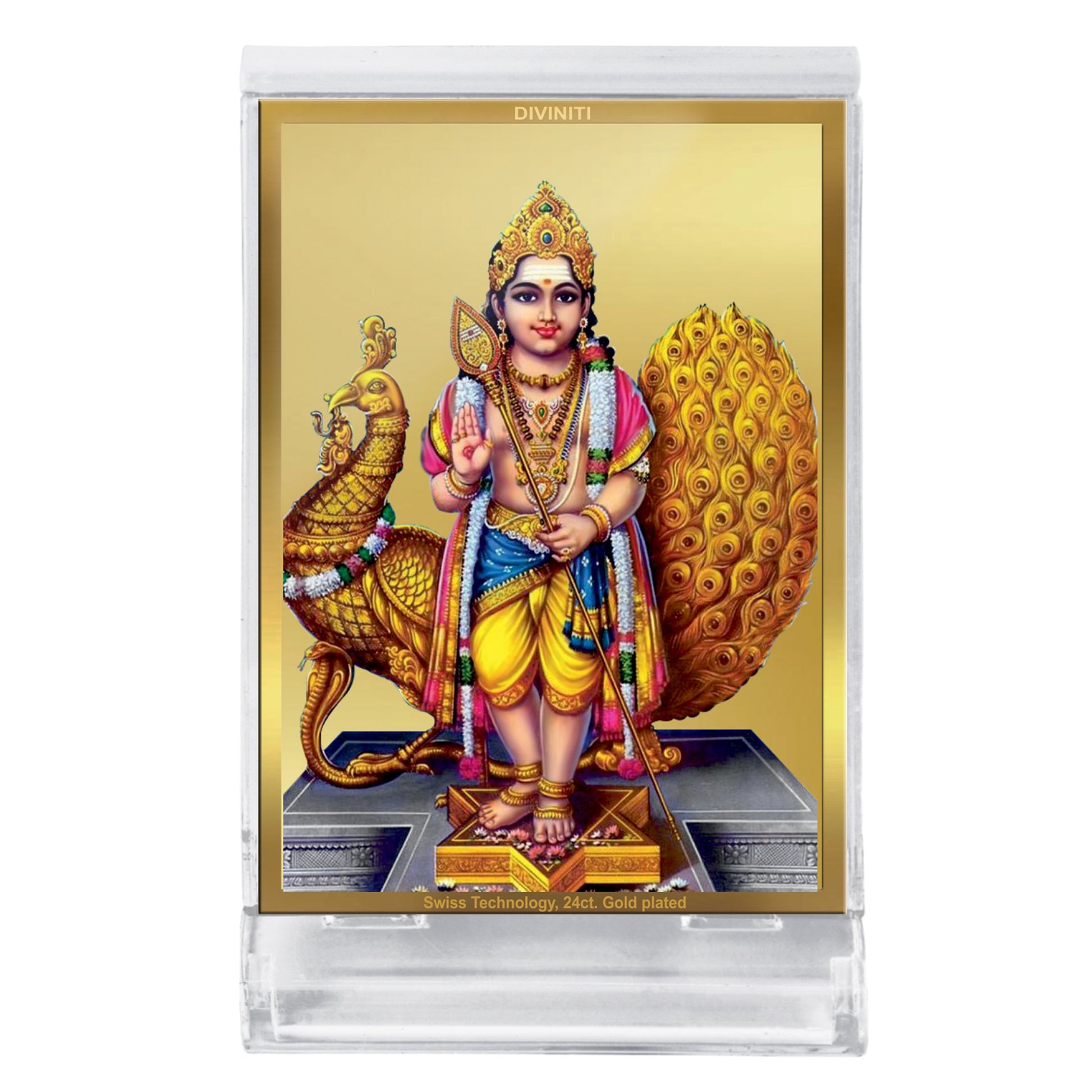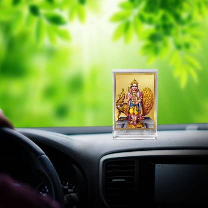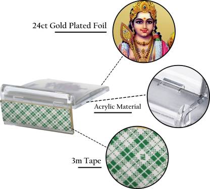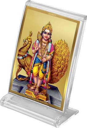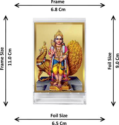 Immerse yourself in a divine ocean while adding a magically beautiful touch to your home, office, table or car dashboard with the addition of wooden photo frame complemented by 24K gold plated foil. The Gold plated foil creates a glorious outlook that makes your car interiors look magical. The ACF Acrylic frame bears the image of lord Karthikey standing with his Vahana peacock.