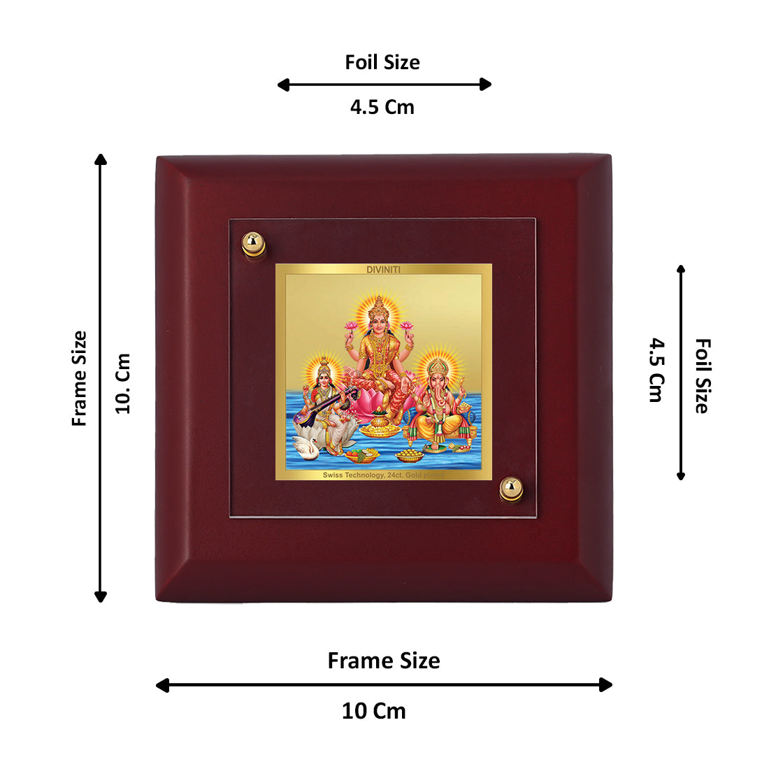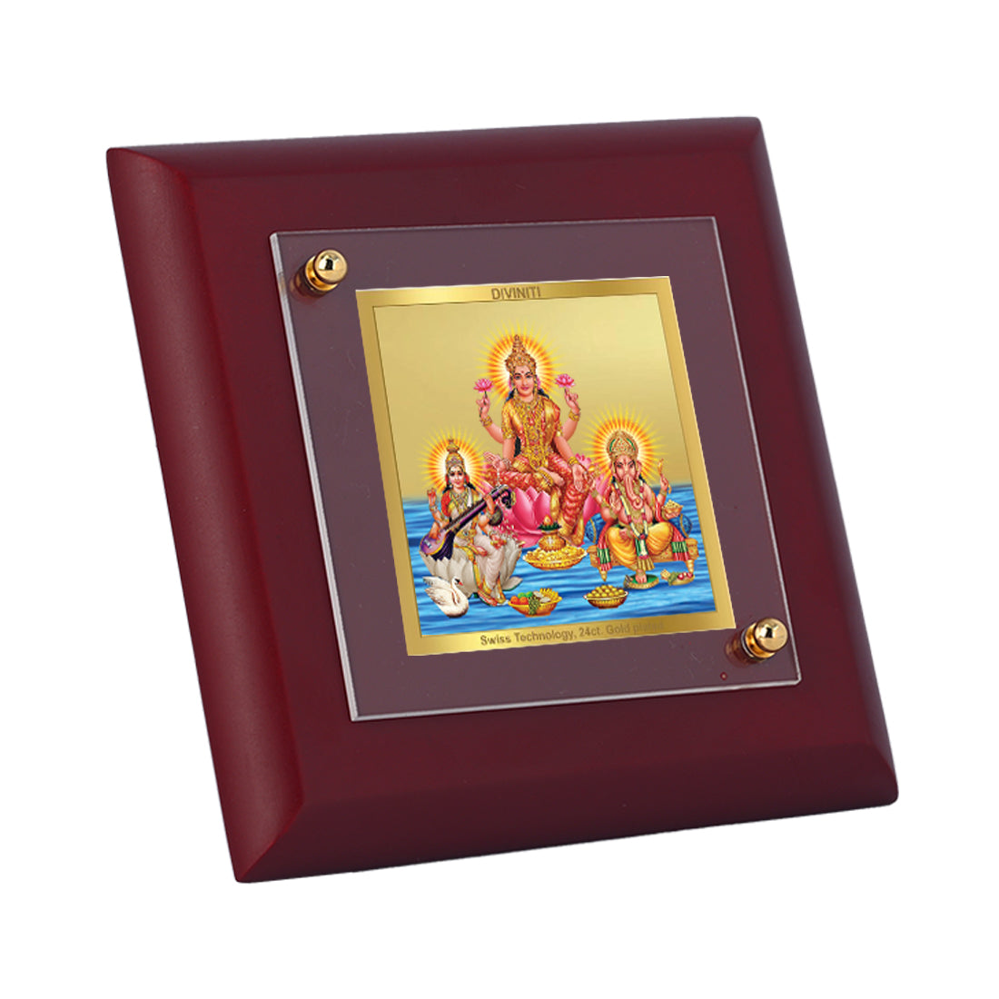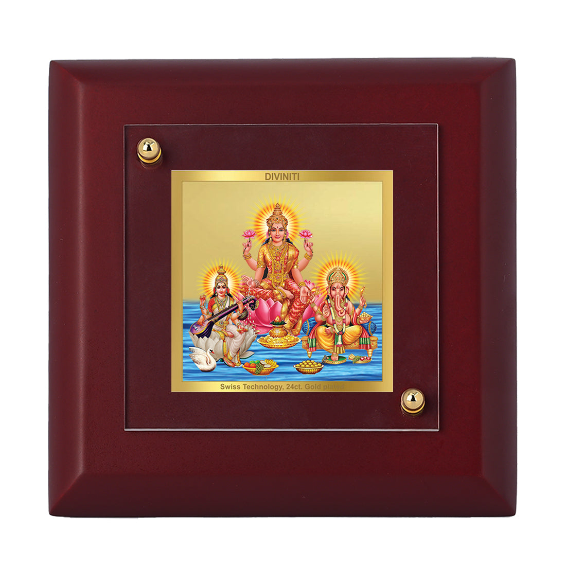 Diviniti 24K Gold Plated Lakshmi Ganesh Saraswati Photo Frame For Home & Office Decor