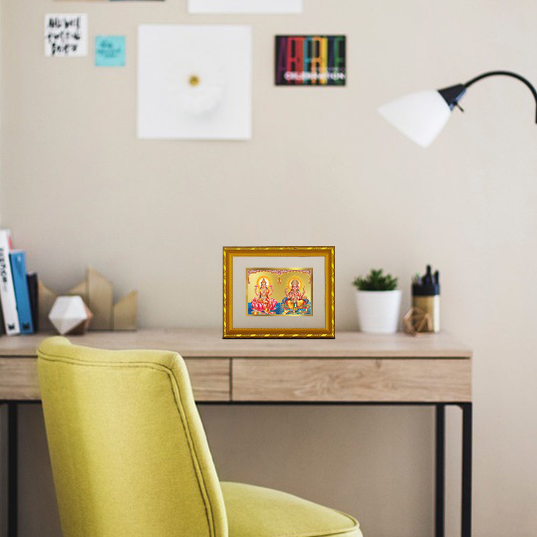 Immerse yourself in spirituality while adding a decorative touch to your walls of your home or office with the addition of wooden photo frame complemented by gold plated foil. The Gold plated foil creates a glorious outlook that makes your interiors look mesmerizing. The MDF Wooden frame bears the image of Goddess Lakshmi & Lord Ganesha that infuses an instant energy full of divinity and positivity. The 24K Gold Plated foil adds a unique glory to your décor and interiors.