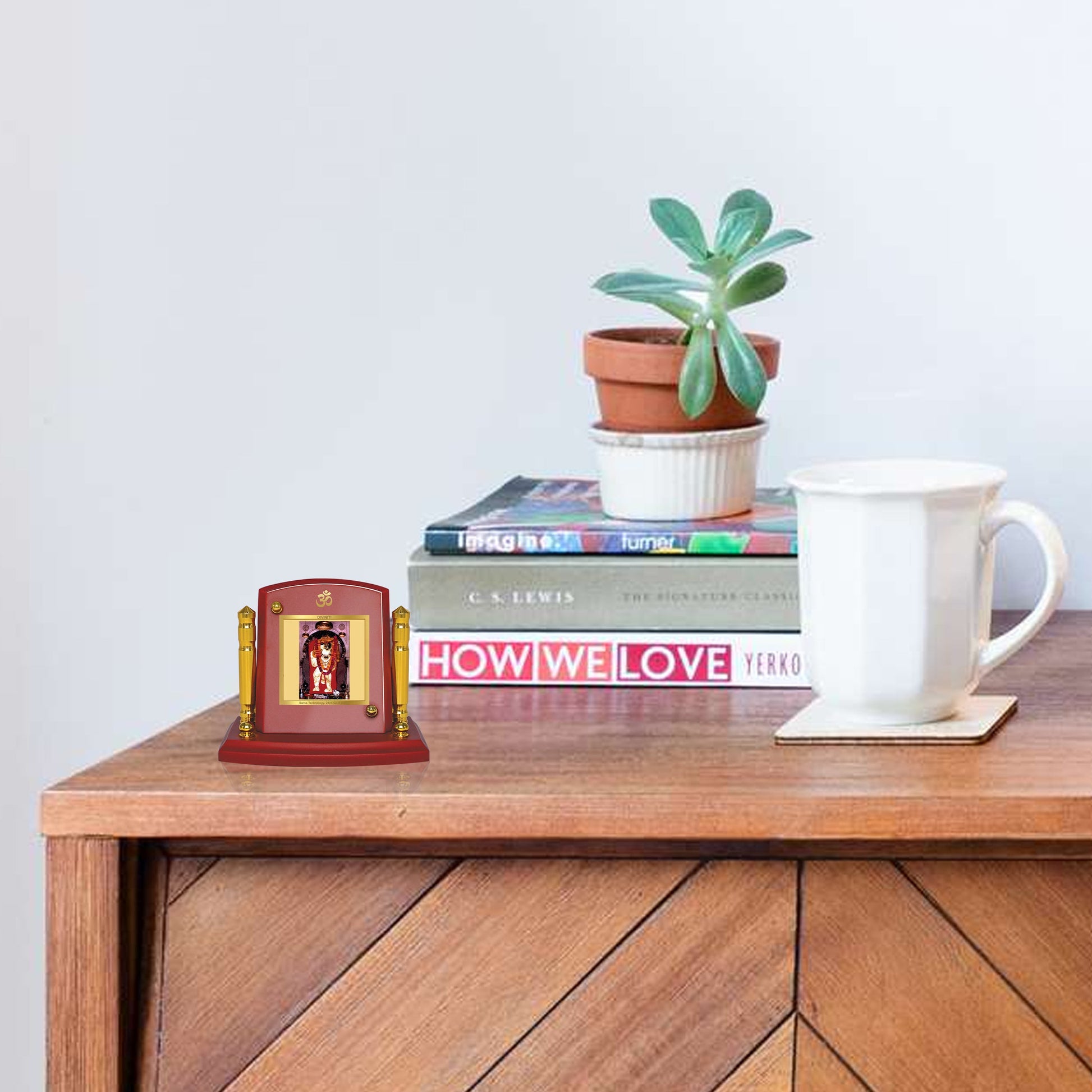 This Mehandipur Balaji frame serves as an exquisite addition to your car dashboard, home, table, office, shop or showroom. You can also use it in your Puja Prayer room to create a serene and sacred atmosphere. Made from Wooden Material and adorned with 24K gold-plated foil, this divine frame is crafted to withstand the test of time, ensuring long-lasting spark and durability.