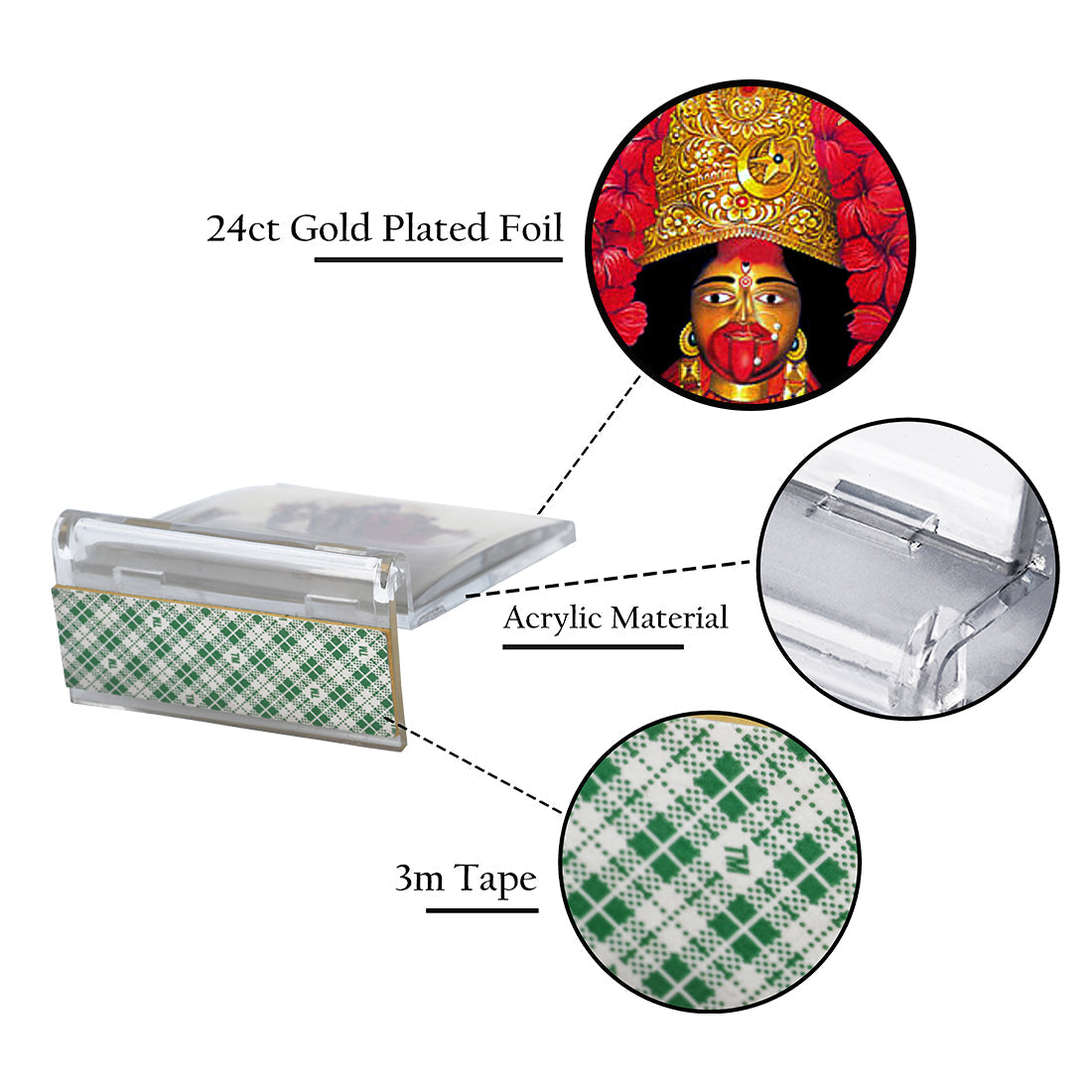 This Tara Devi frame serves as an exquisite addition to your car dashboard, home, table, office, shop or showroom. You can also use it in your Puja Prayer room to create a serene and sacred atmosphere. Made from acrylic material and adorned with 24K gold-plated foil, this divine frame is crafted to withstand the test of time, ensuring long-lasting spark and durability.